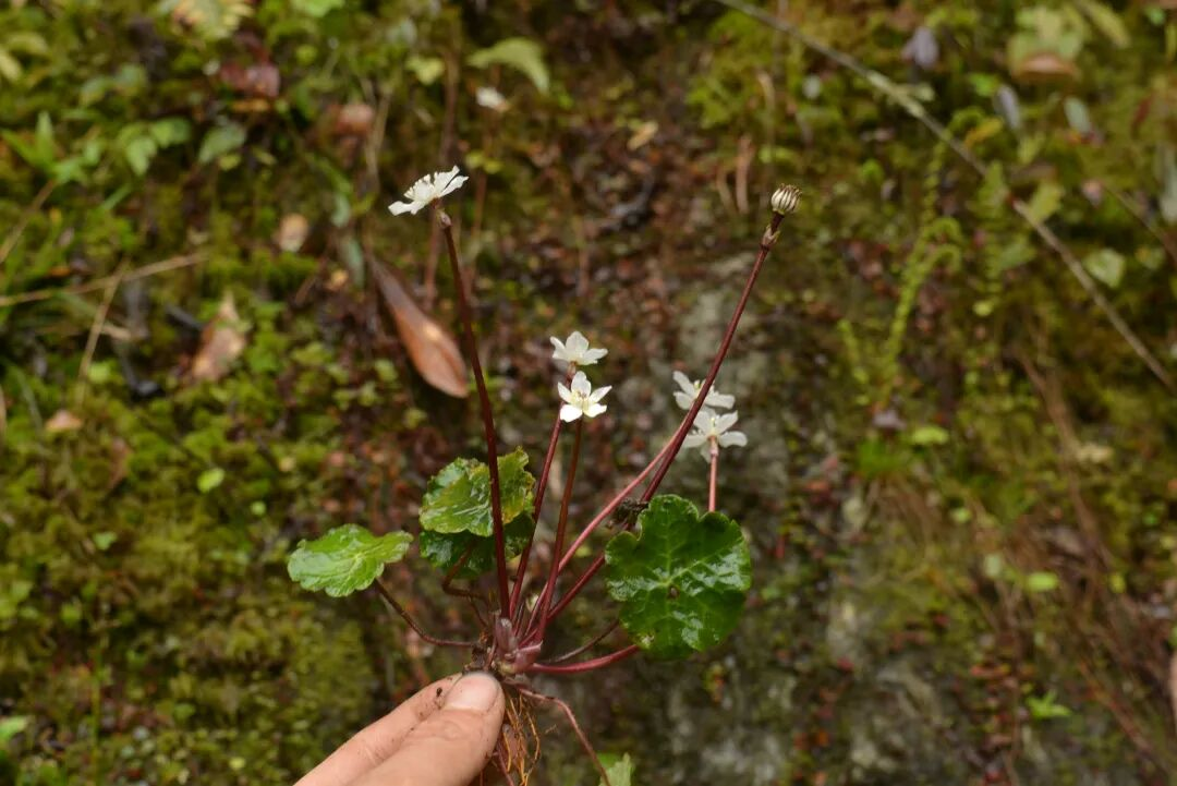 多年生小草本。叶片圆形或近五角形,宽2~3cm,不分裂或五浅裂,边缘具波状浅锯齿,表面绿色,疏被紧贴的短硬毛,背面浅绿色,无毛;叶柄密被倒向的长柔毛。花1~3条,疏被倒向的长柔毛;萼片倒卵形,顶端圆形;花瓣金黄色,长约为萼片之半,瓣片倒卵形或近圆形,下部具细爪;雄蕊比花瓣稍长;心皮长椭圆形,顶端渐狭成花柱。蓇葖卵形,种子宽椭圆形。